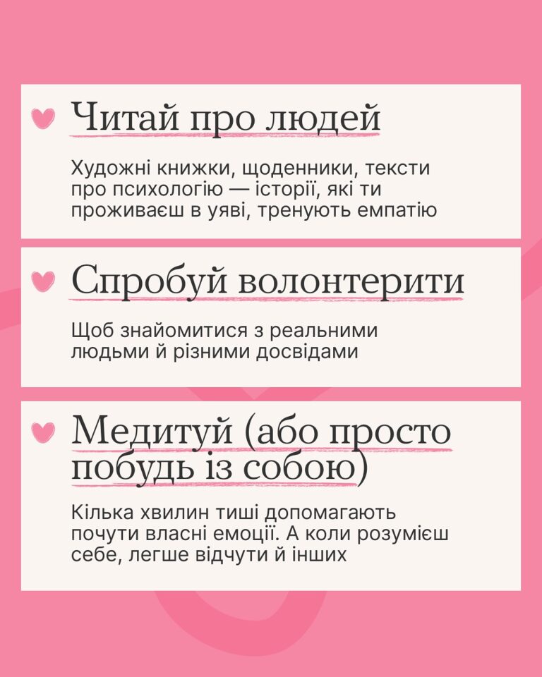 Дещо з уроків емпатії можеш навчитися і ти: ідеї, як прокачувати її, є в каруселі.